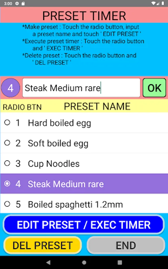 You don't have to set the timer each time. "Super Timer Pro" can memorize the set time of 50 items. All you have to do is select from them and tap the start button each time.