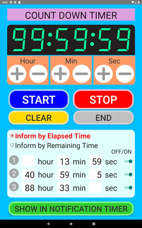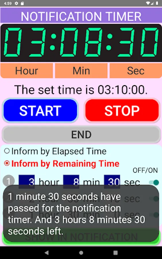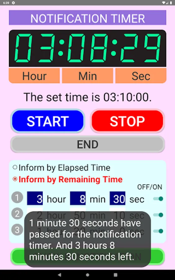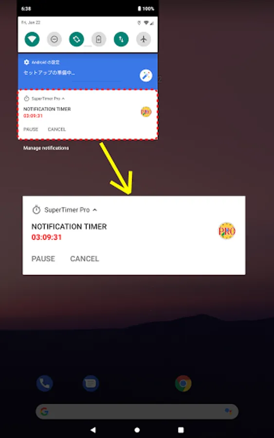 *After closing the app, the "notification timer" will work in the notification bar (status bar at the top of the smartphone screen), so you can use other apps. The notification timer will continue to run even if you turn off your smartphone.
