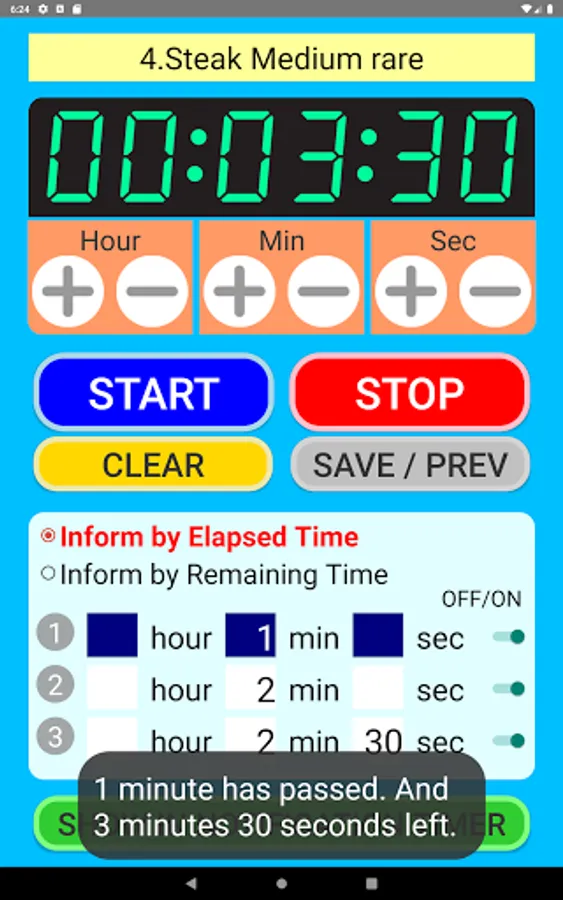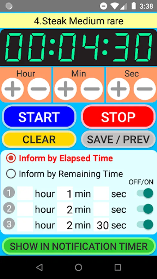 *You will be informed of elapsed / remaining time three times during the countdown, and when the countdown is complete. Information can be switched between human voice, ring tone and vibration. Of course, you can adjust the volume freely.