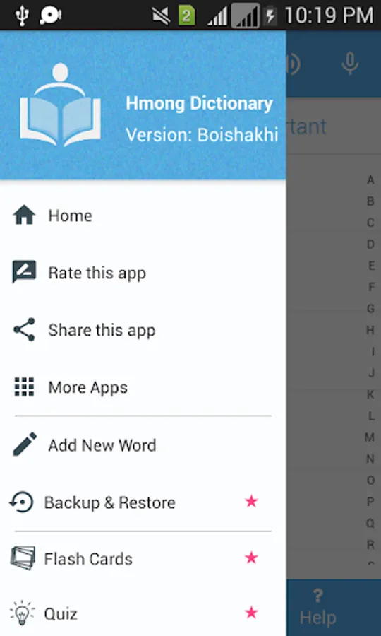 Backup & Restore: You can take backup of your history, favorite and word of the day words on SD card, on your google drive and/or dropbox account. And later you can restore any time from any place on any device as you like.