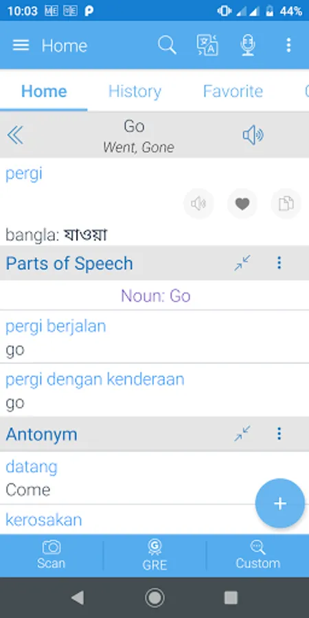 Backup & Restore: You can take backup of your history, favorite and word of the day words on SD card, on your google drive and/or dropbox account. And later you can restore any time from any place on any device as you like.