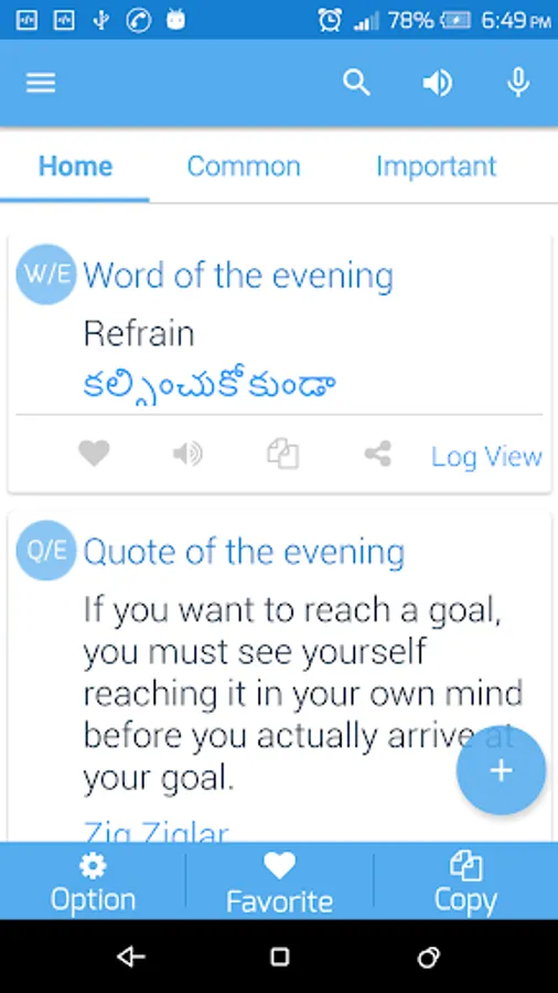 Home Screen Wallpaper: You want to learn words even if you are outside app. Yes, you are right. This is now possible with our live wallpaper feature. From drawer please select live wallpaper and you will see words with meaning on your home screen. You have lots of options to customize this wallpaper screen. Like words can be selected from favorites, history and Word of the Day section. Time frame can also be selected by you. Today, Yesterday, This week, Last week, All times and more. From wallpaper settings you can fully customize the screen. Please enable and enjoy this feature.