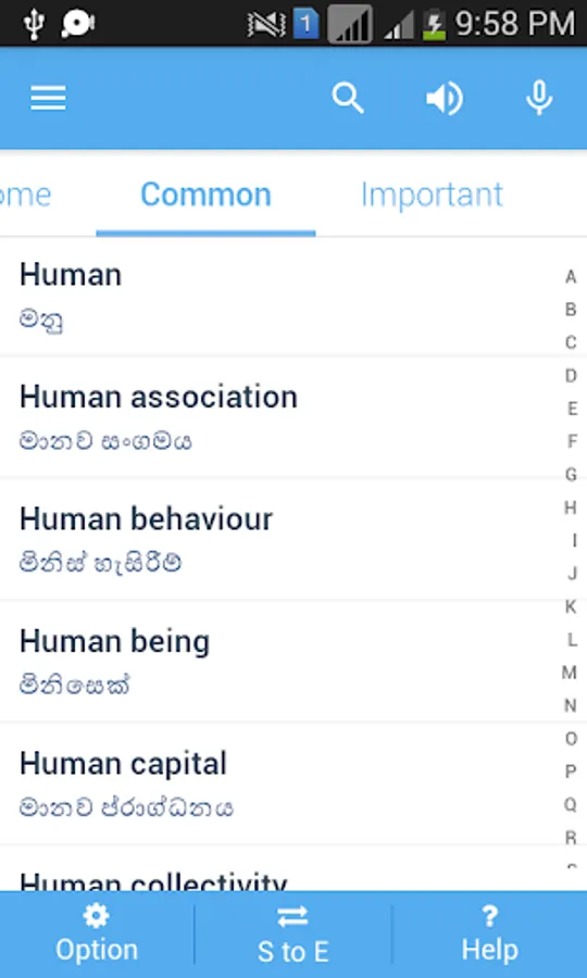 Common and important words and meaning that helps to read it like a word book of English and Sinhala.