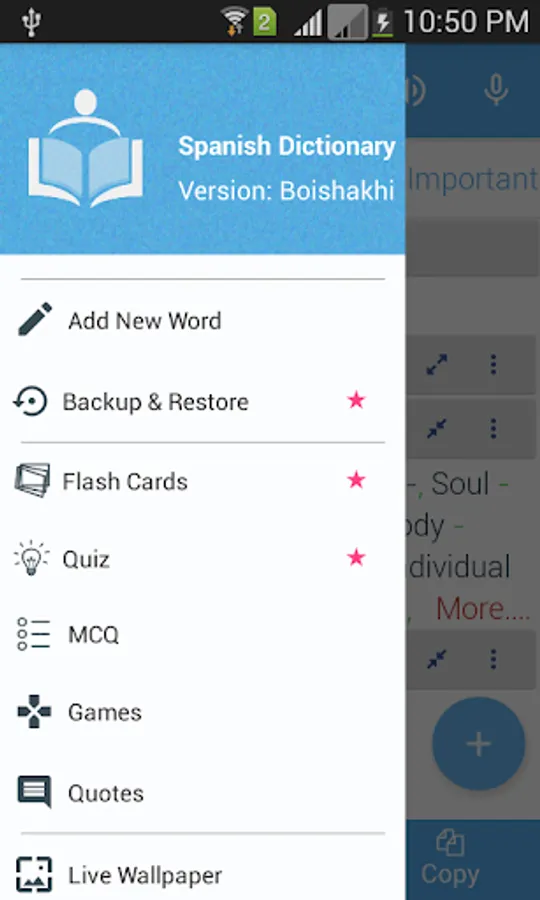 Las opciones de fondo de pantalla en vivo se pueden utilizar para ver y aprender la palabra incluso el usuario está fuera de la aplicación.