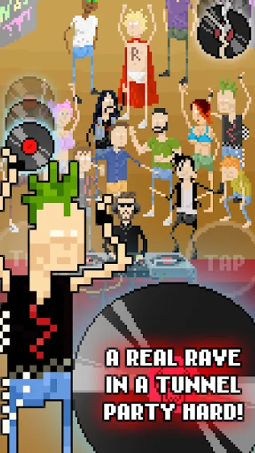 The gameplay is simple, you must TAP the screen exactly when the vinyls fall on the screen. If you do it well, you will add new ravers to your party, but if you fail, the guests will start leaving your party.