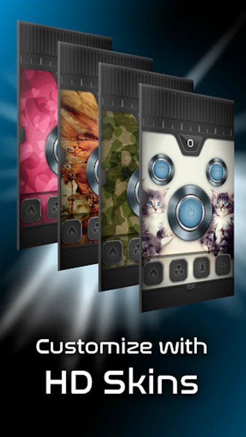 - Customization through Skins: create a unique flashlight with the free skins that permits you to change the flashlight's design: Camouflage, Black flashlight, Green fluorescent, Junior