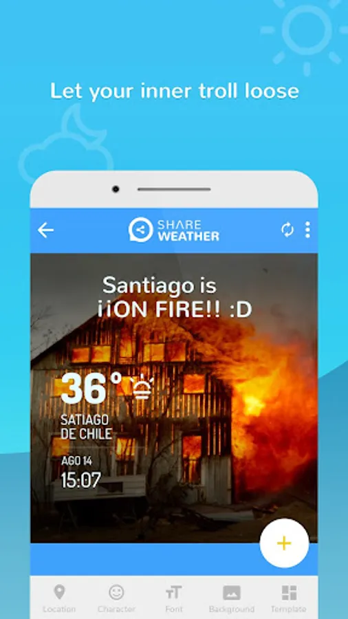 How many climatological apps have you tried? If it’s more than one, you probably realized that they are all the same. Well it’s time for a change. Try Share Weather and discover a new, entertaining way to know the daily forecast and share it with your friends.
