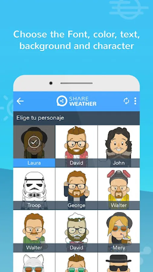 -We created fun characters that will be the ones in charge of informing you of the weather, including the protagonists of your favorite TV shows, in exclusive HD illustrations and internet memes lol .