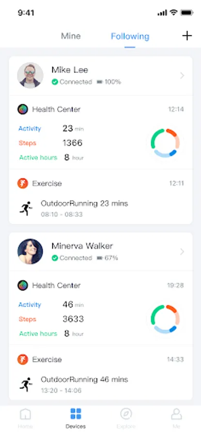 Mobvoi's newly released app to help you connect with your family friends. It allows you to view the health and exercise information of anyone you care about. To follow other users, please download TicCare App on their watches first. Then open Mobvoi app on your phone , tap on the "+" icon on the Device page, then scan the QR code on the watch to follow others.
