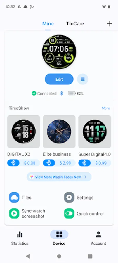Smartwatch management: including watch pairing, watch settings management, notification management, watchface management, account settings, etc.