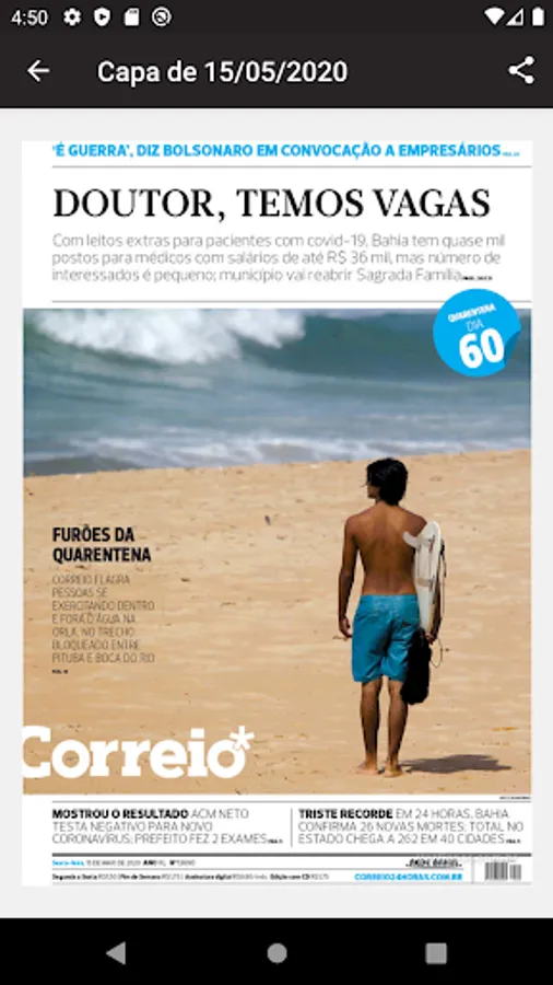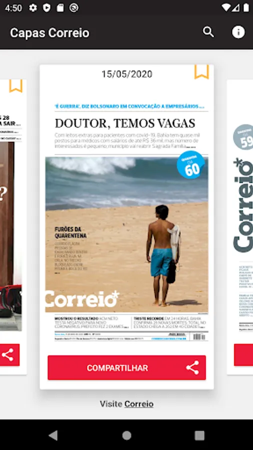 CapasThe Correio Correio Covers aims to facilitate the viewing and sharing of the covers of the print editions of the Correio newspaper. The app also allows you to bookmark your favorite covers, in addition to allowing searches to be made for covers of past dates. All free 😉