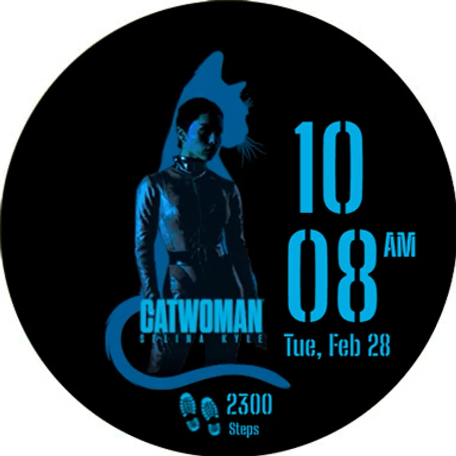 Vigilante, anti-hero, hero? You decide when you wear this animated watch face that features Selina Kyle a.k.a. Catwoman.