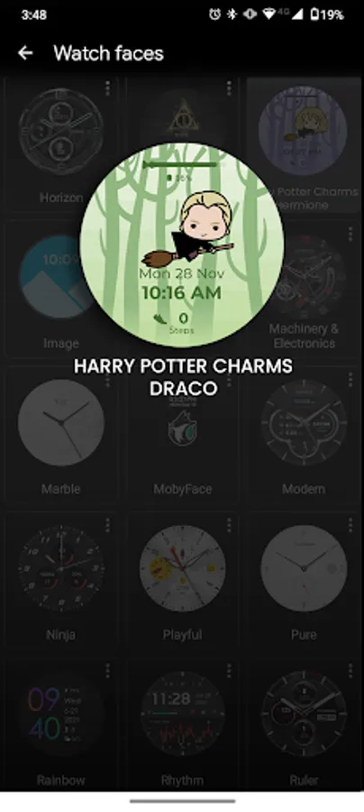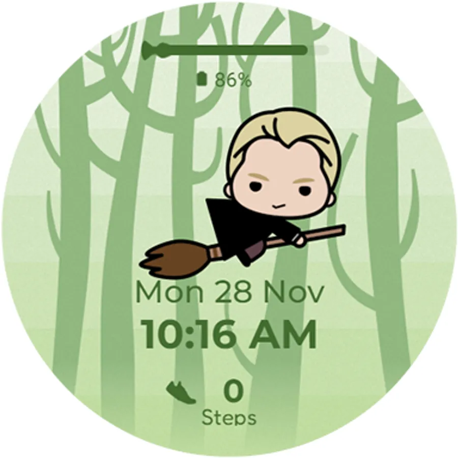 This magical watch face features a charm-style drawing of Draco Malfoy.
