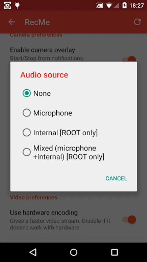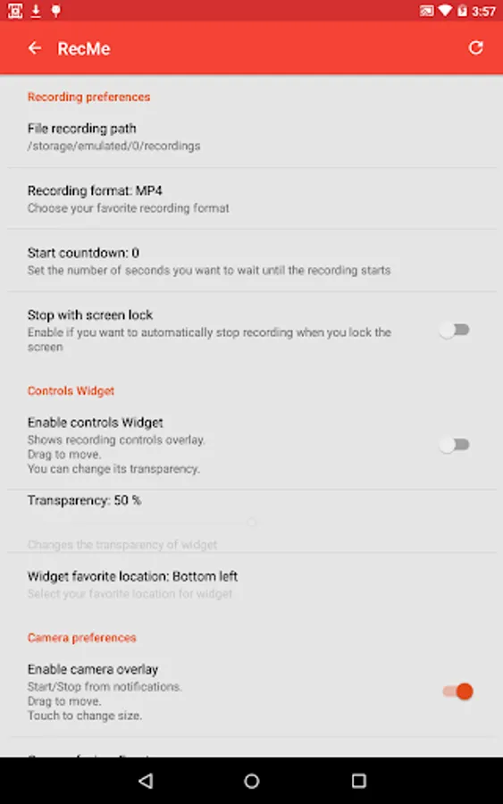 [✔] Display front or back camera overlay on your screen while recording (Pro version)
