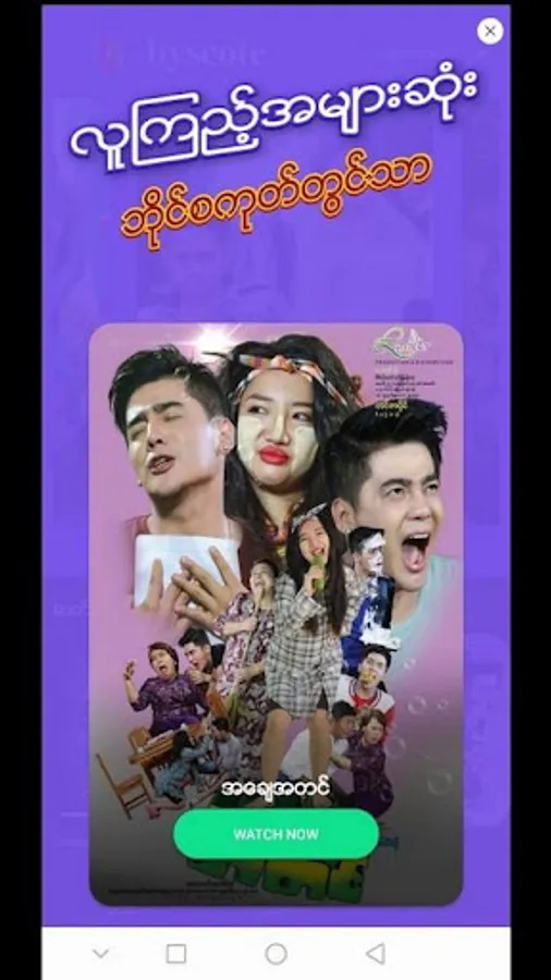 Byscote သည္ အေကာင္းဆံုးျမန္မာရုပ္ရွင္၊ ဗီဒီယုိကားသစ္အစံုကုိ တစ္ေနရာတည္းမွာ စိတ္ၾကိဳက္ၾကည့္ုလိုု႔ရမယ့္ မုိဘုိင္းအက္ပလီေကးရွင္းျဖစ္ပါတယ္။ လူၾကီးမင္းတုိ႔ဧ။္ေဖ့စ္ဘြတ္အေကာင့္ကုိ အသံုးျပဳၿပီးအေကာင့္ဖြင့္လုိက္တာနဲဲ႔ Byscote ရဲ႕မန္ဘာဝင္တစ္ဦးခ်က္ခ်င္းျဖစ္လာမွာပါ။ မန္ဘာျဖစ္တာနဲ႔ Byscote မွတင္ဆက္ထားေသာ ရုပ္ရွင္ကားအားလံုးကုိ Play ခလုတ္ကုိႏွိပ္လုိိက္ရံုျဖင့္ သင့္စိတ္ၾကဳိက္ၾကည့္ႏုိင္မွာျဖစ္ပါတယ္။ သင့္အေနနဲ႔လစဥ္မန္ဘာေၾကးသြင္းထားျခင္းျဖင့္ Byscote မွတင္ဆက္ထားေသာရုပ္ရွင္မ်ားအားလံုးကုိ တဝၾကီးၾကည့္ရႈႏုိင္ပါၿပီ။ လစဥ္ေၾကးမွာ တစ္လလံုးစာအတြက္ ၁၄၀၀ က်ပ္သာျဖစ္ၿပီး ေပးသြင္းရန္နည္းလမ္းေပါင္းမ်ားစြာတုိ႔ႏွင့္လည္း ခ်ိတ္ဆက္ထားၿပီးျဖစ္ပါသည္။ ဒ့ါအျပင္ ေဒါင္းလုပ္ဆြဲၿပီး ေဇာ္ဂ်ီ၊ ယူနီကုဒ္၊ အဂၤလိပ္စတဲ့ ေဖာင့္ေတြနဲ႔ ေျပာင္းလဲၾကည့္ရႈႏုိင္မွာျဖစ္ပါတယ္။
