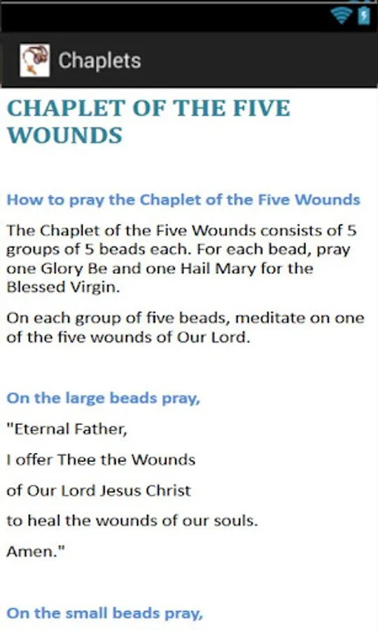 This is a free android app of Catholic Chaplets which contains the following prayers: