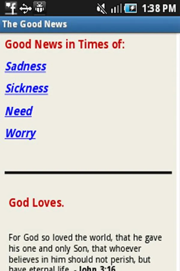 The Good News is a collection of Bible verses, selected to give comfort, joy, and inspiration to Catholics/Christians, especially in times of sadness, sickness, need and worry. It also has a page rich with random bible verses that can be copied (and pasted) on facebook, and shared via sms, email and other social networks.