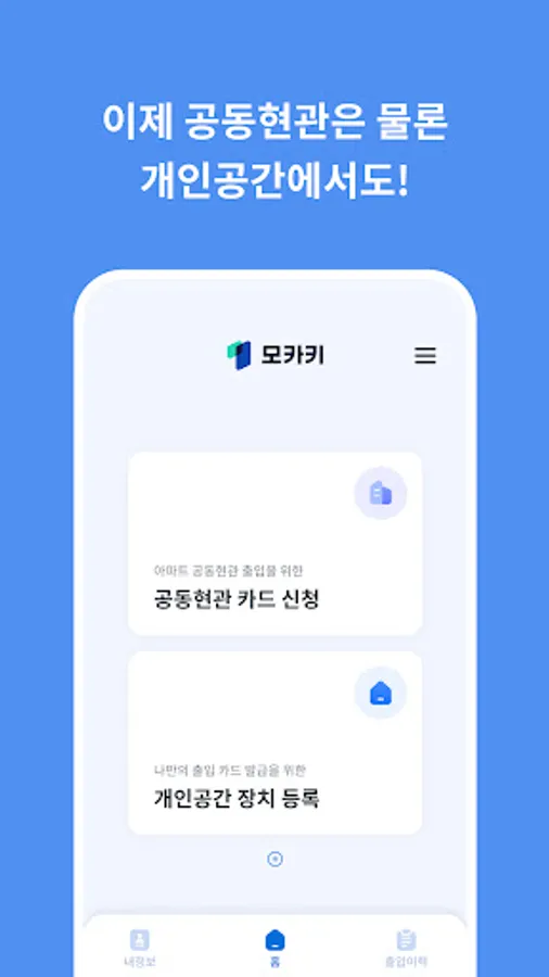 Mokaki helps you open the door lock of an apartment complex or a private space with a mobile device. Now you can open the door or manage access conveniently anytime, anywhere through a mobile app.
