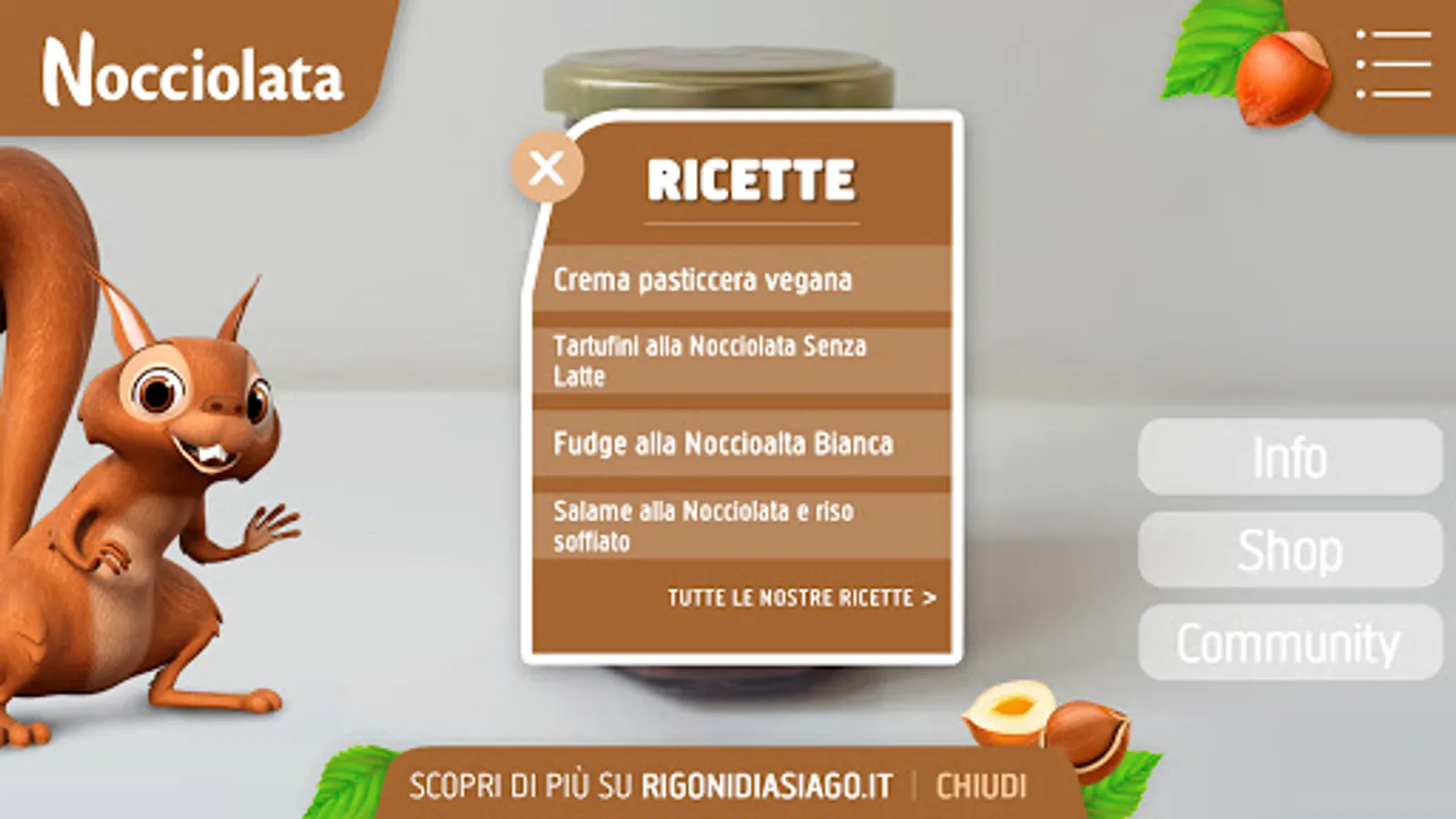 Discover the organic world of Nocciolata Rigoni di Asiago with augmented reality! Through this app, you will be able to know everything about Nocciolata, with constantly updated information, videos, games, many delicious recipes and much more.