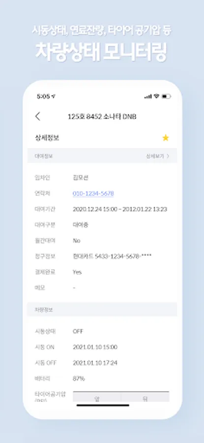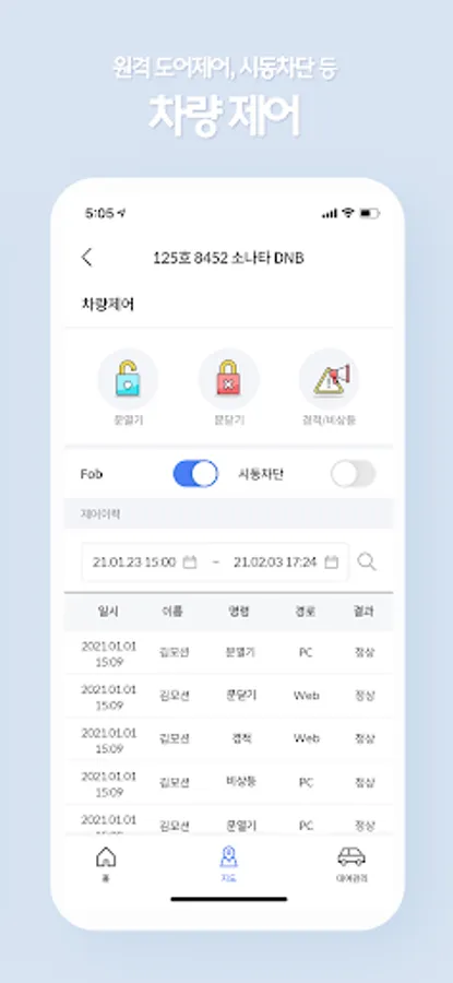 Control functions such as the current location of the vehicle, driving history, and whether the vehicle is started