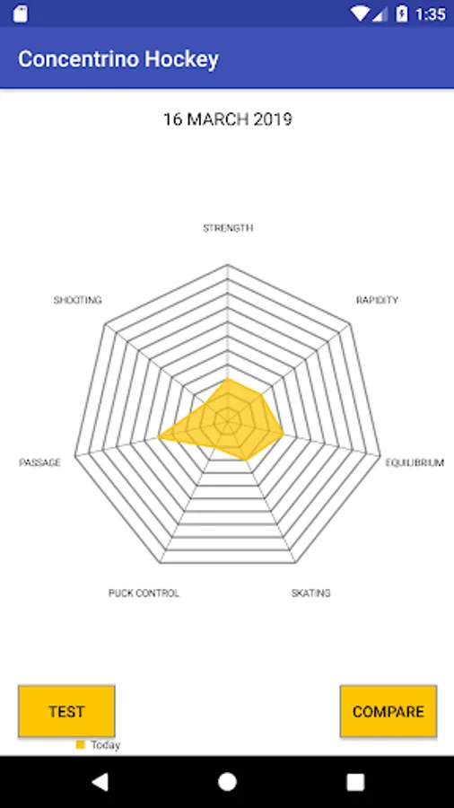 Fill out the "PHYSICAL" and "MENTAL" profiles by evaluating your current level of skill on a scale from 0 (to nothing) to 10 (very much). Score 10 is represented by the outer ring, 9 from the nearest one, and so on up to 0. Then with the "COMPARE" key, select a previous compilation date to evaluate your progress.