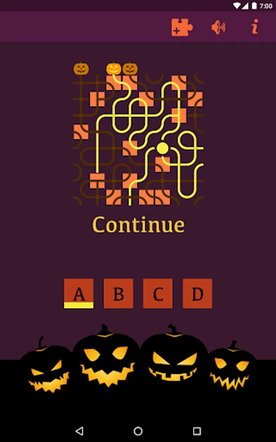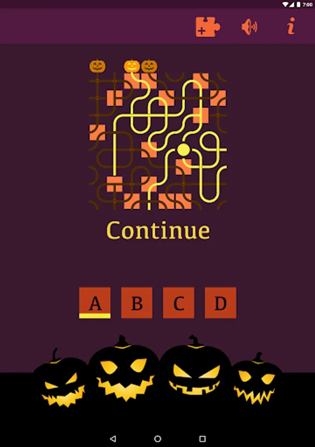 First few puzzles are very easy, don’t get confident, there are quite a few labyrinths of light inside as the number of pumpkins and paths increase!