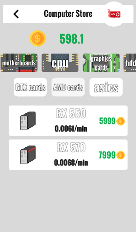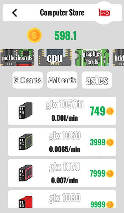 - 2 categories of graphics cards gtx and rx.