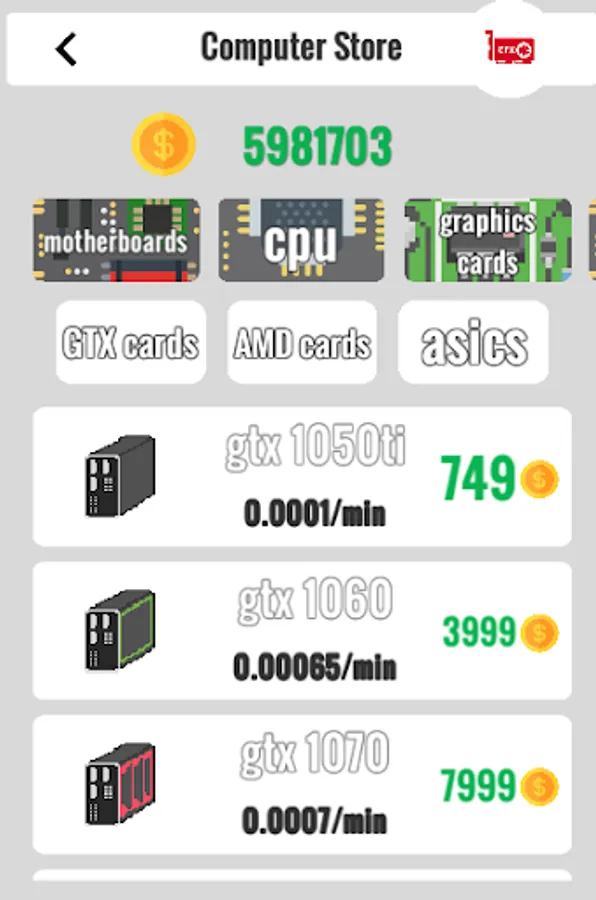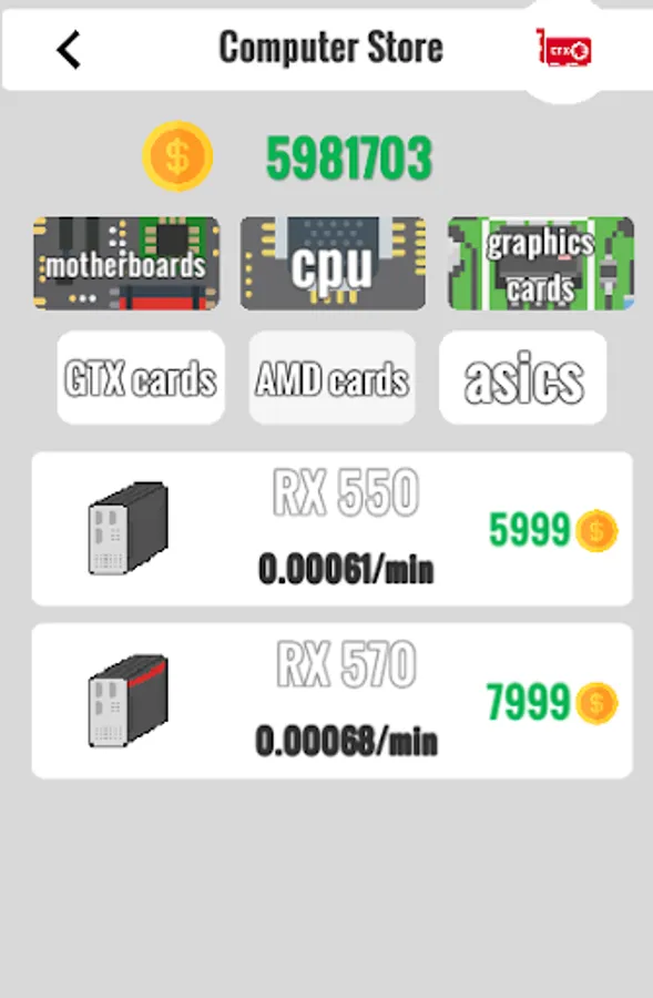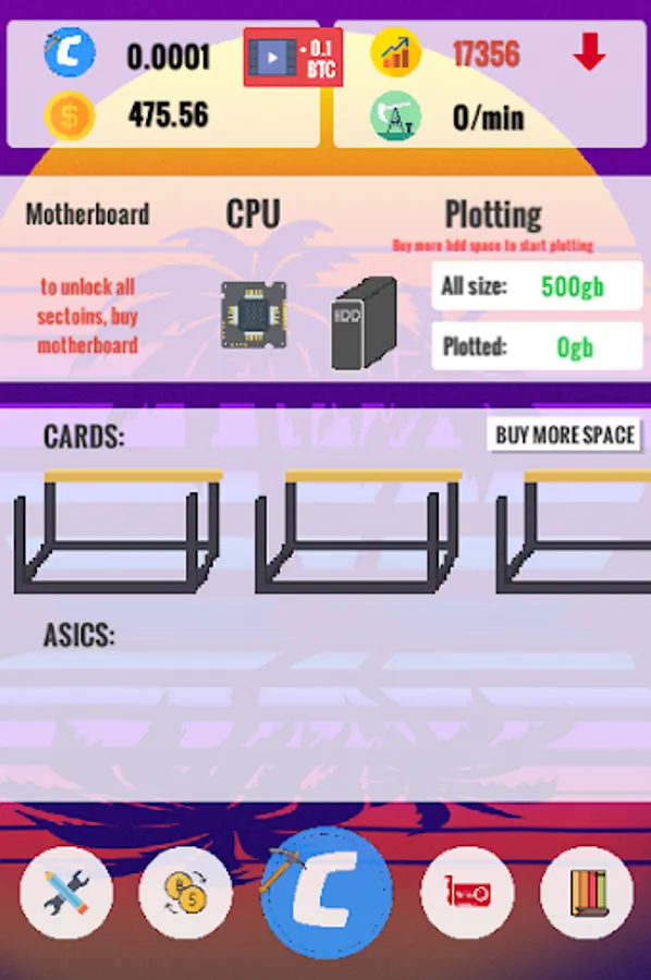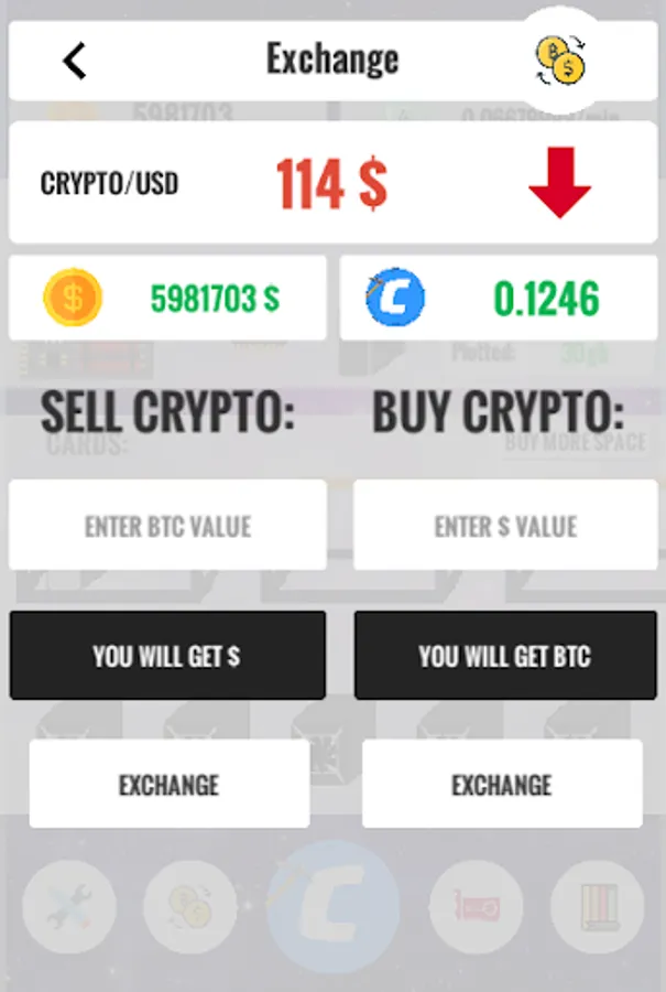 In Crypto Clicker Miner Tycoon you can build your mining farm! Earn Crypto exchange them to dollars in dynamic stock exchange and buy more graphics cards and processors then mine more crypto.