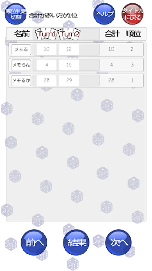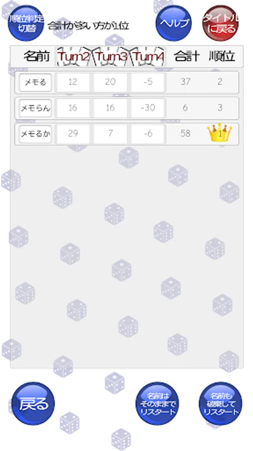 ・点数合計が高い/低いのどちらが1位なのか選択できます