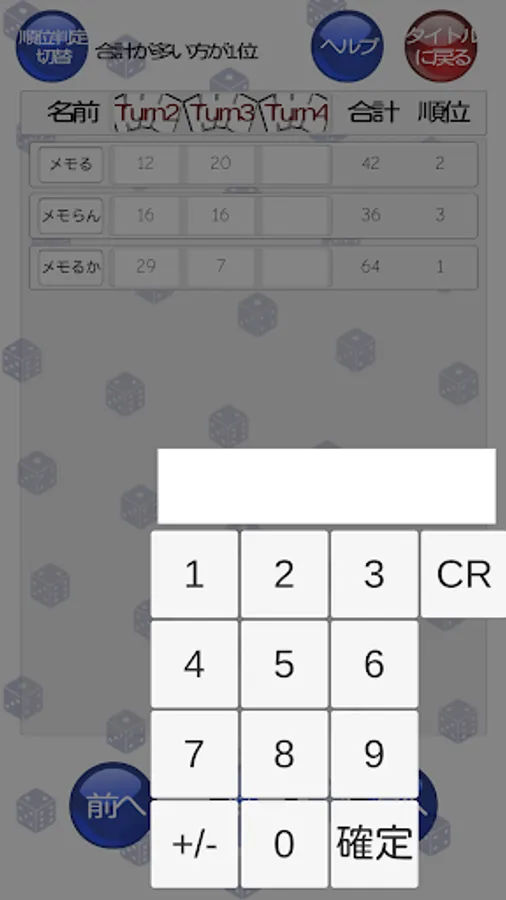最大12人までの点数のメモが可能です。