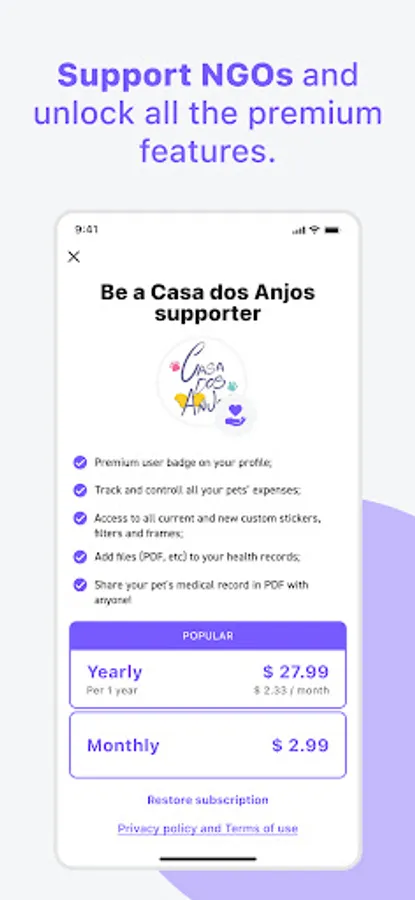 Besides, you can manage all your expenses with your pet, having an overview of monthly costs and saving with what you spend the most.