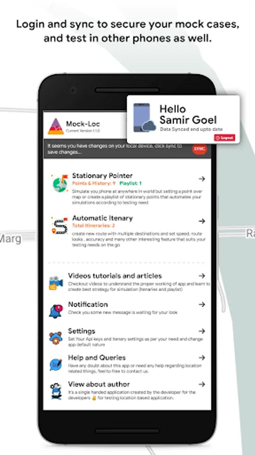 Login into the app and sync your mock scenarios that will save your time from the recreation of playlist when installing the app on another phone.