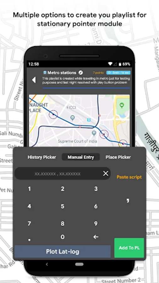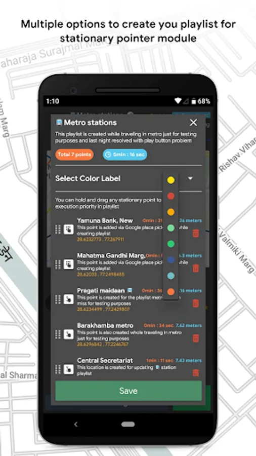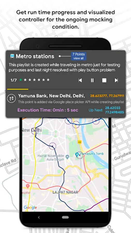 Playlist feature - Think about a mocking scenario and create a playlist and add as many as points in the playlist that suits your scenario, you can input custom time in seconds for any point in playlist, click over the play button and system will automatically start point next after other as time is finished.