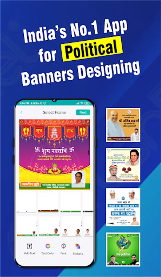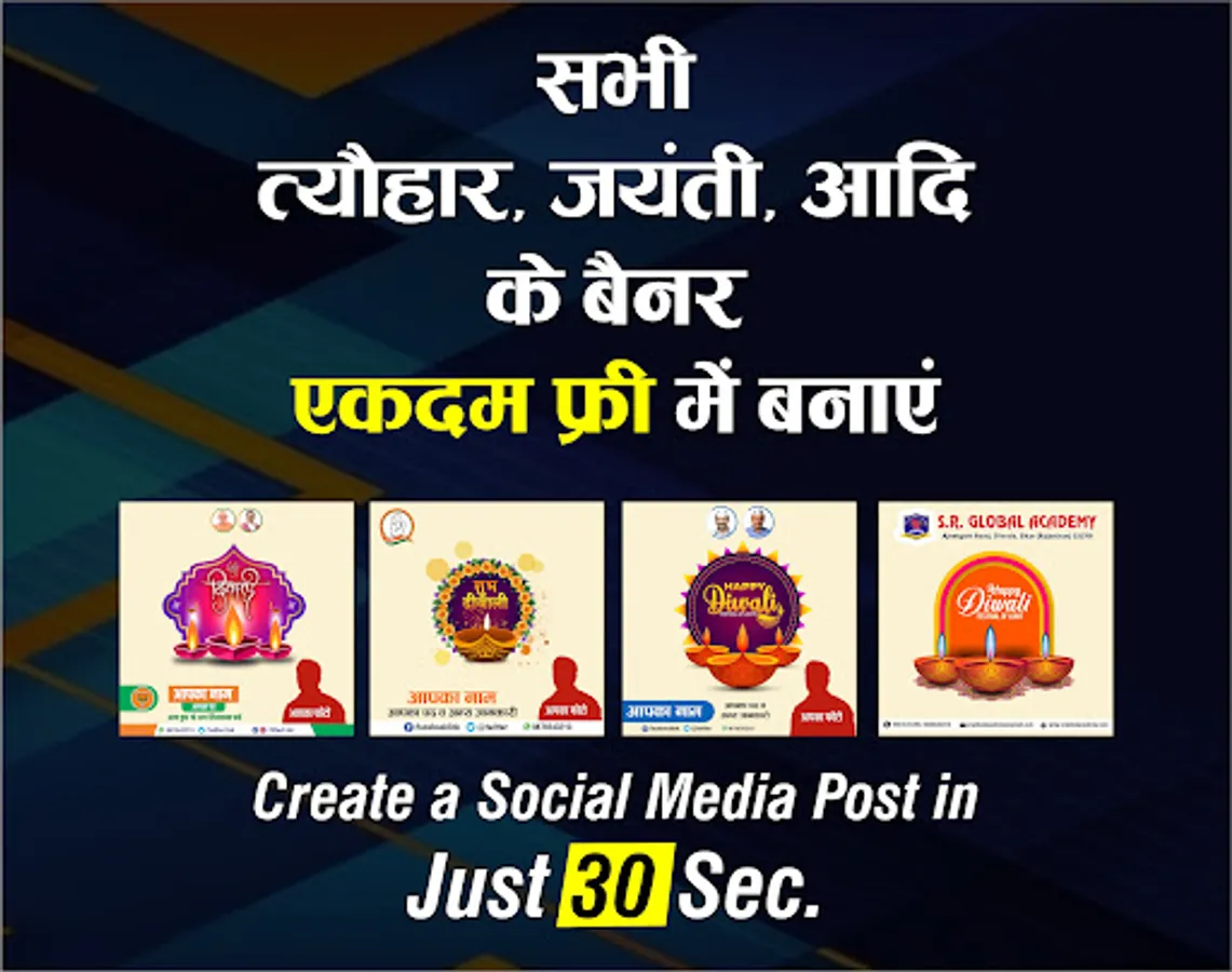 Political Banner Maker & Festival Banner Maker app is #1 Indian Poster Maker App which helps individual business owners, Politicians & companies to designs Daily Post, Jayanti Banners, Festival Banners, Sales Flyer, Business Banners, Day Product Promo, Political Election Publicity, Ads Banner, Greeting, Latest Product Launch Promotion and graphics design concept & ideas for digital marketing to promote business.