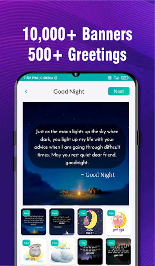 Daily Post such as Motivational Quotes Creator, Good Morning & Good Night message, Farmer, BJP, Congress, Aam Aadmi Party, Politics Banners, News, Freedom Fighters, Educational fact posts, Personal photos edit on social media 365 days to upload as story status or set as DP. Share post on WhatsApp, Facebook, Instagram, Twitter, etc. Also app contains greeting banners for Happy Birthday, RIP, Congratulations, Sales offers where you can add photo & edit banner designs as per your need.