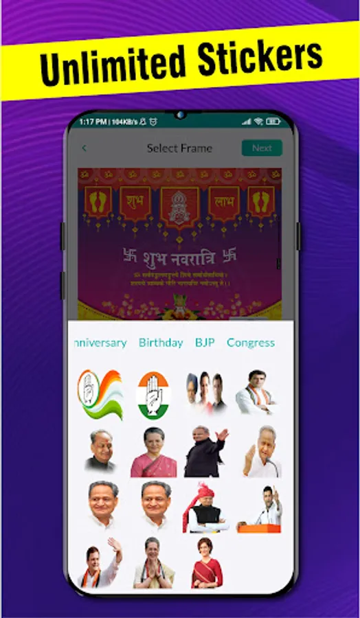Political Banners: In this app you can design political posts for all parties like Congress, BJP, Rashtriya Loktantrik Party (RLP), Aam Aadmi Party, RJD, CPIM, JJP and others.