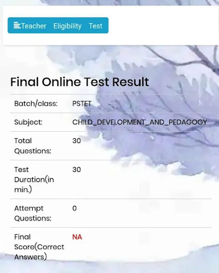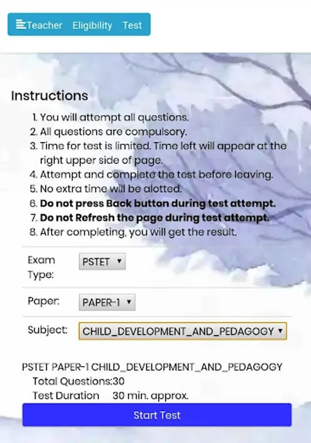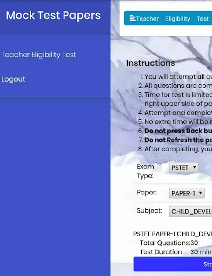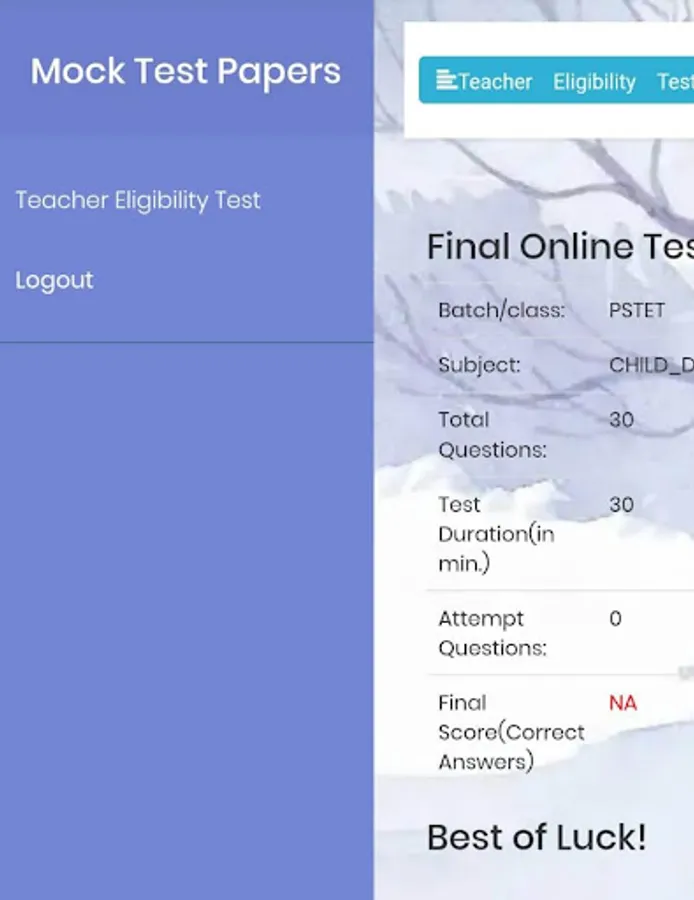 This app is totally FREE. This app is meant for a person who wants to appear in Teacher Eligibility Test. This app is very helpful to prepare him/her to crack TET exam because this app organize a Mock Tests (MCQ) in real environment in time limit. It offers to answers 30 questions in 30 minutes and produce result instantly after completion. This app contains Center as well as State TET Mock Tests. It covers all subjects like Pedagogy (Child Development), Mathematics, English, Science, Environment Studies, Social Studies. It does not require any registration/email/mobile. It just downloads and starts to Practice with Mock Test. It does not contain/provide any study material about TET. It only organizes online TET Mock Test papers.