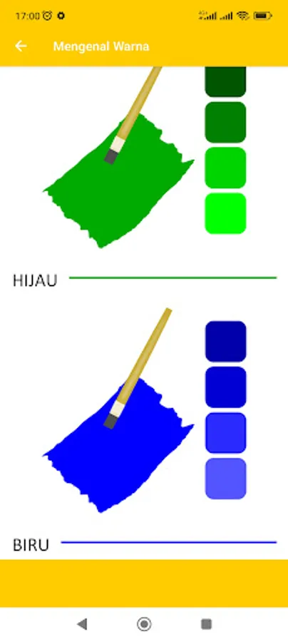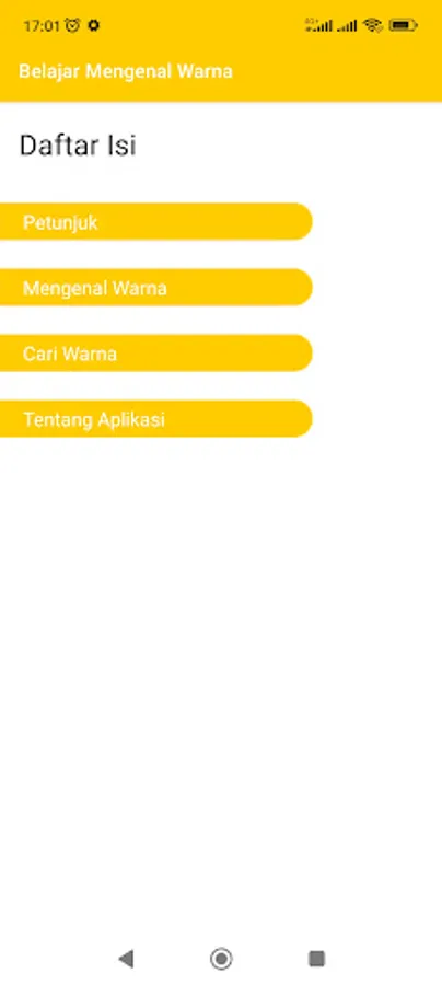 This application was created as a learning effort for beginners. The learning application for Learning to Know Colors is an Android-based application, because it is made easy for users to access so that it can be learned and useful.