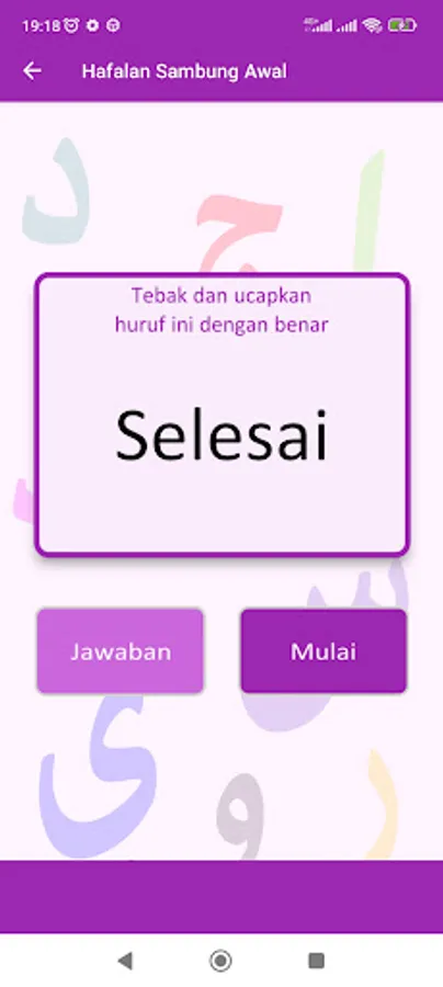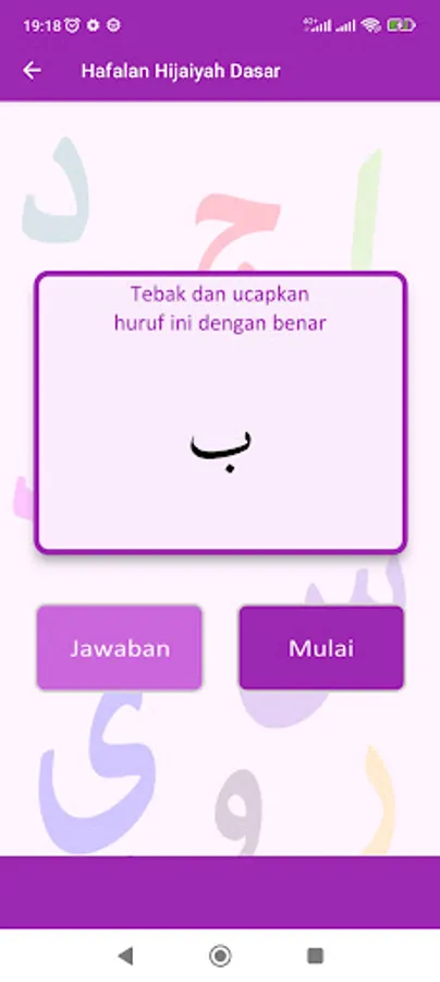 The material presented in this application is how to remember/memorize hijaiyah letters by guessing letters.