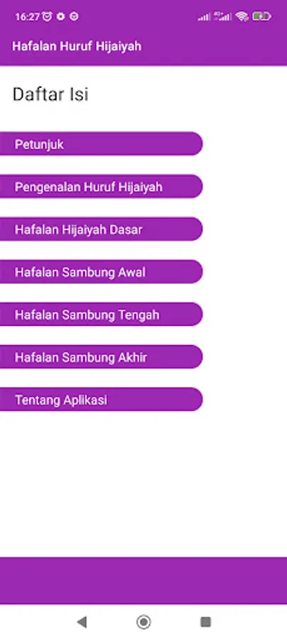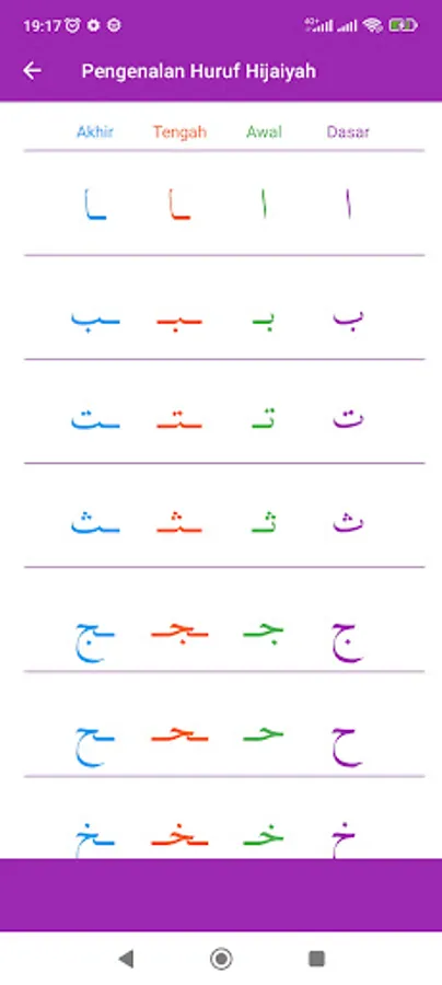 Hopefully this application can provide knowledge and increase understanding of how to learn and remember the hijaiyah letters that are presented in this application.