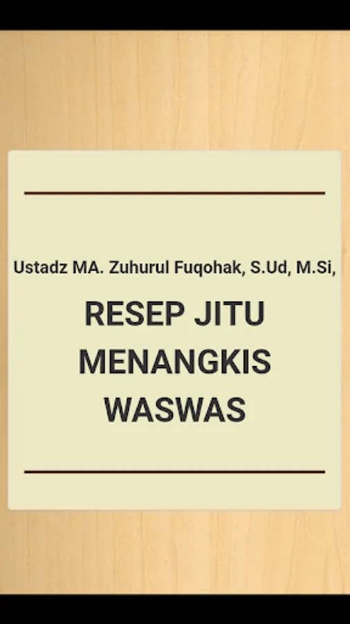 With the presence of this book in the android version is expected to help readers who are healing from anxiety.