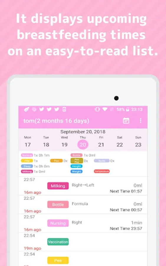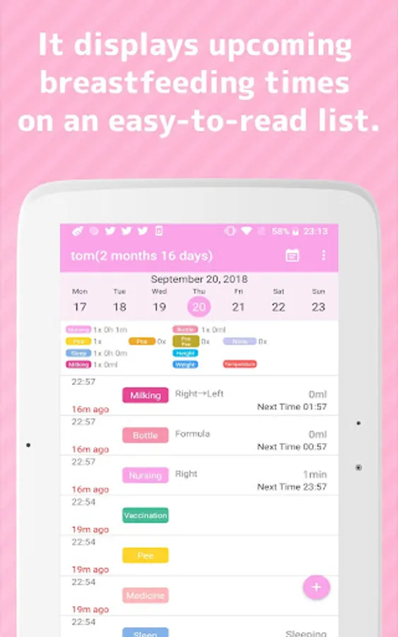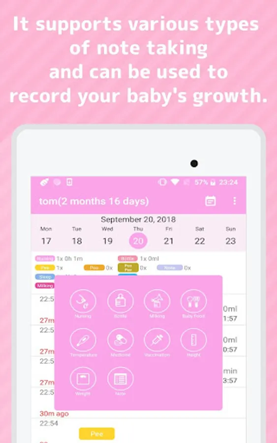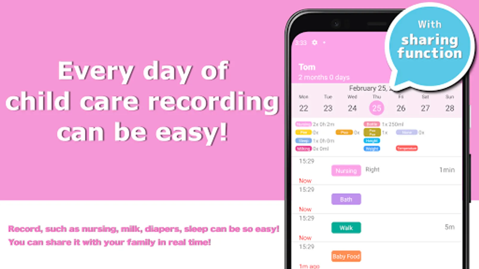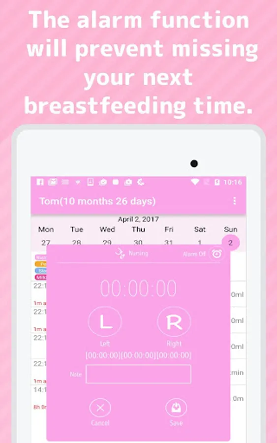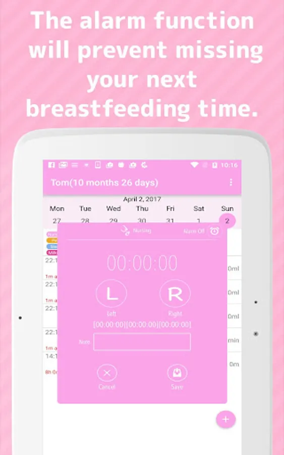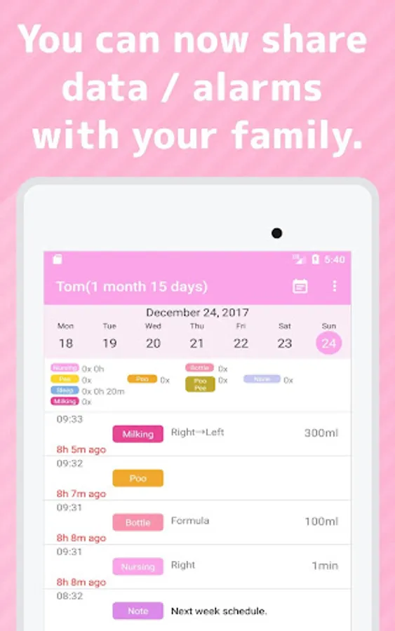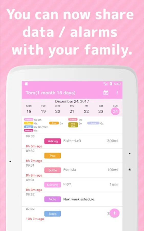* Easily track nursing, milk, milking, diaper changes, and sleep.
