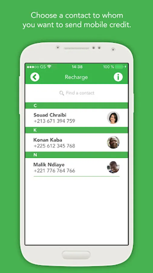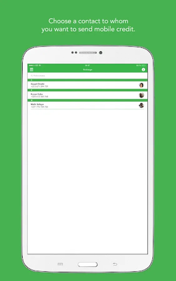 1. Choose a contact to whom you want to send mobile credit.