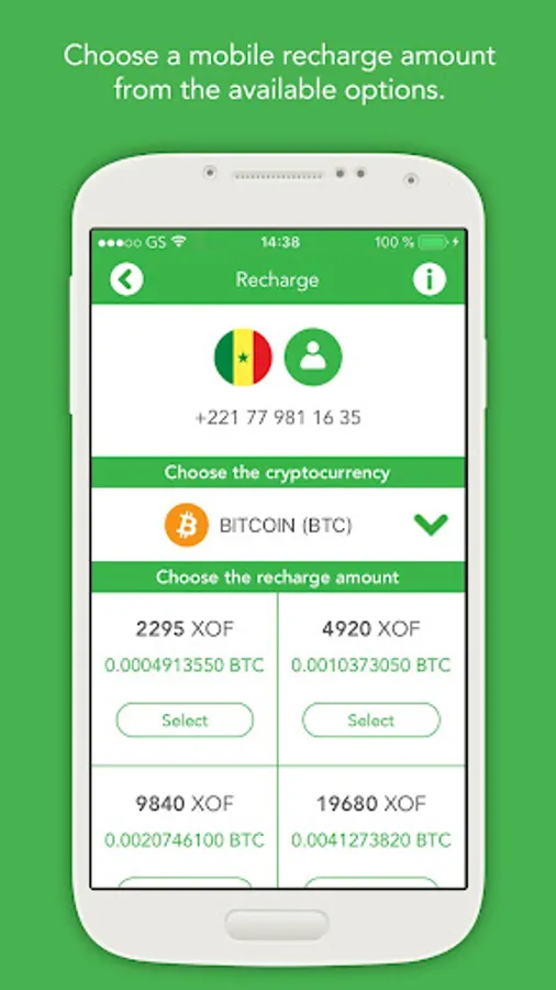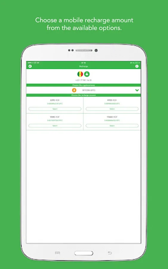 2. Choose a mobile recharge amount from the available options.