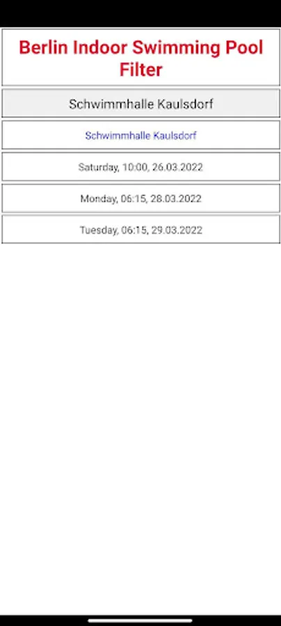 With this app you can see life all free slots of swimming pools of the Berliner Bäderbetriebe. Select your desired swimming pool or get a full overview.