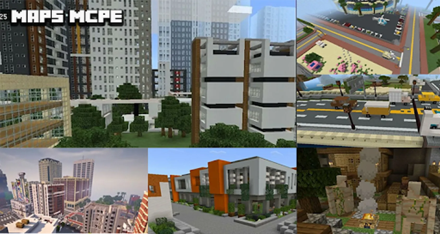 * City Maps: Explore intricate city maps filled with skyscrapers, bustling streets, and detailed architecture, allowing you to immerse yourself in the urban Minecraft PE experience.