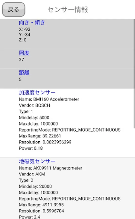 ◆ Sensor information