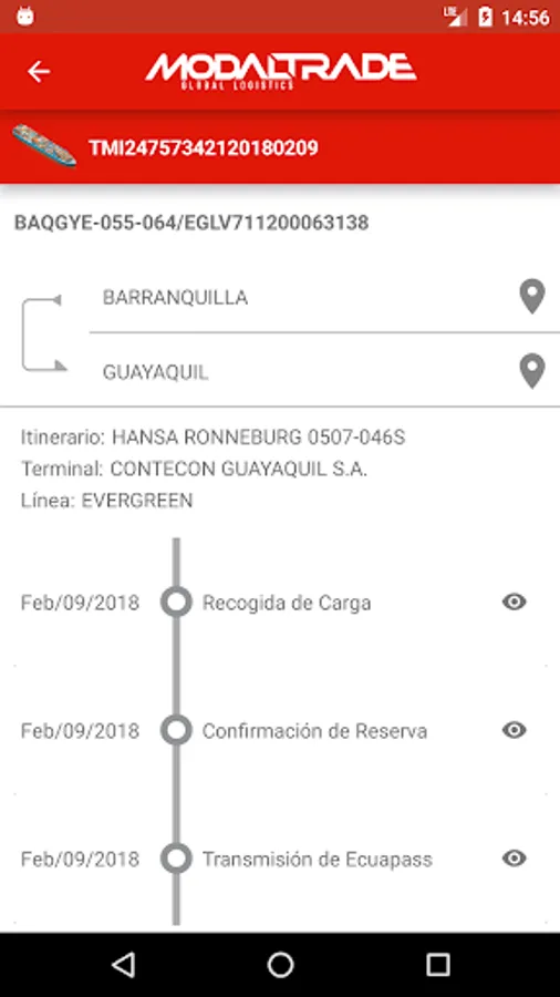 It is the easiest, quickest and easiest option to view the status of your export and import cargo in real time, in the mobile application Modaltrade S.A. ECUADOR can: