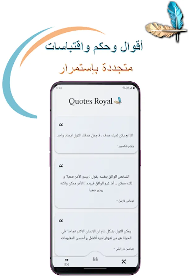 Many and many sayings, wisdom and quotes by the most famous scholars and thinkers in Arabic and English, and they are constantly renewed.