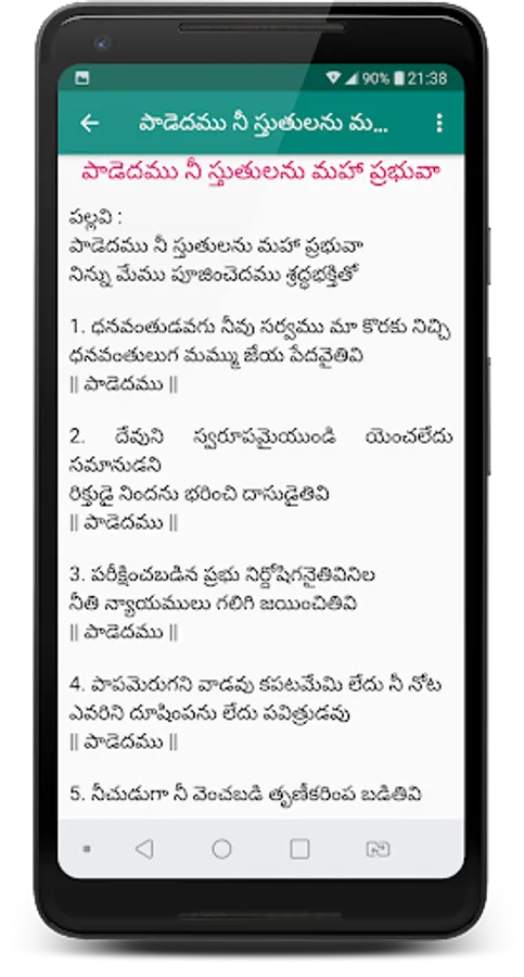 The intention behind to prepare this application is to reach all Christians through songs. Listening to these songs they have to grow in spirituality.